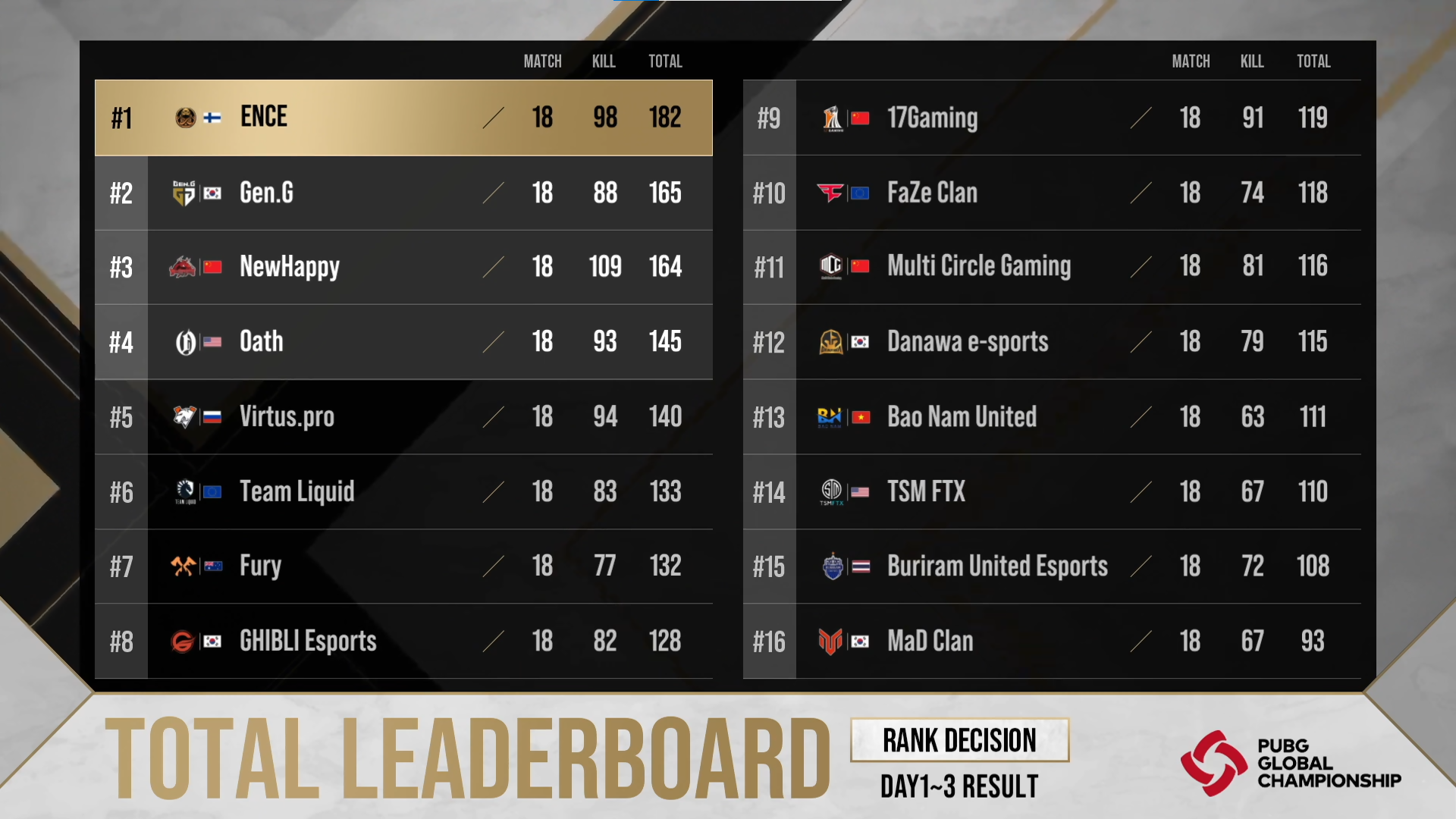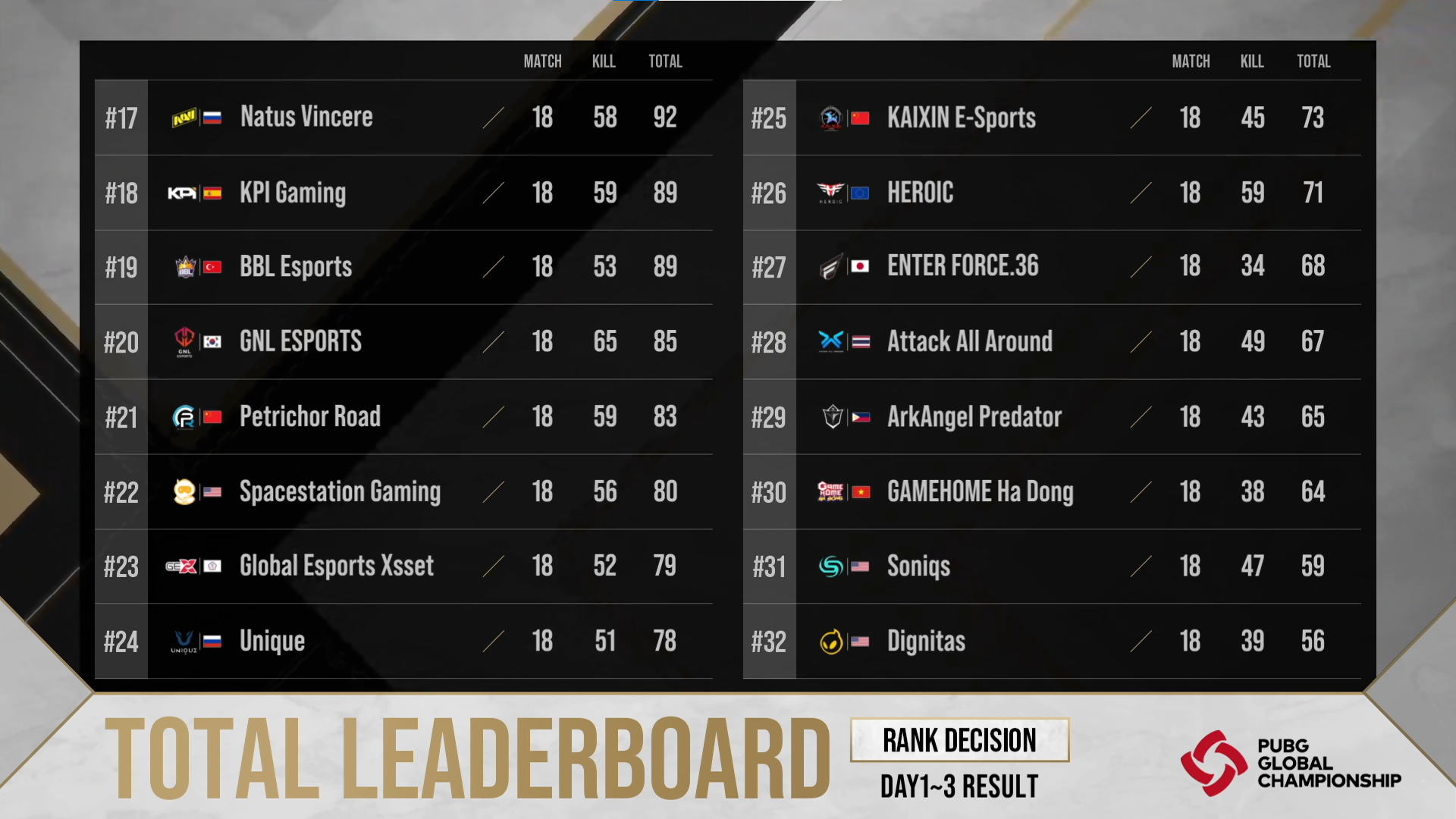 11월 19일 PGC 2021 개막 후 3일 간 진행 된 순위 결정전(Rank Decision)의 결과를 안내 드립니다.