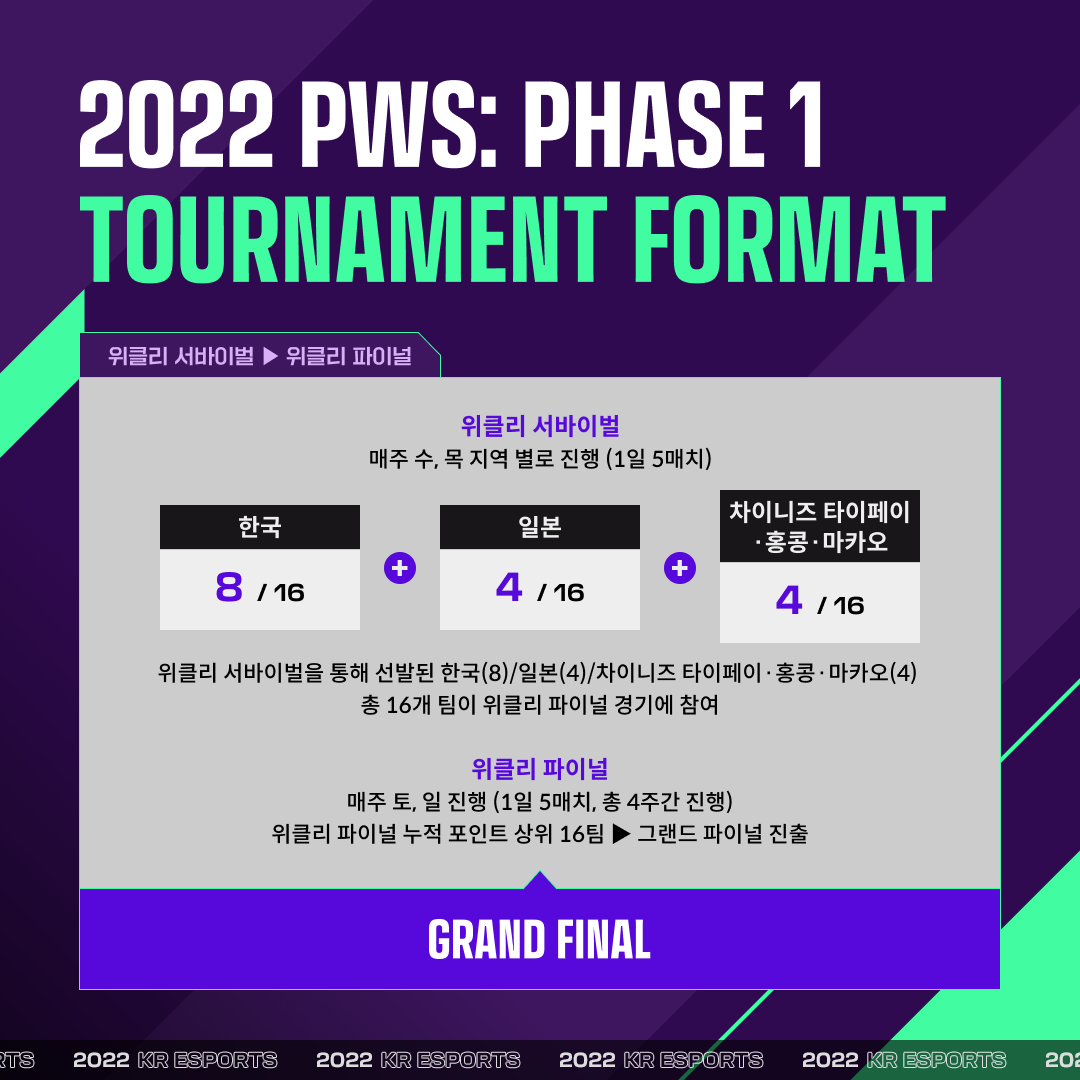 한국, 일본, 차이니즈 타이페이·홍콩·마카오가 함께 참가하는 펍지 위클리 시리즈(PWS)의 대회 구조가