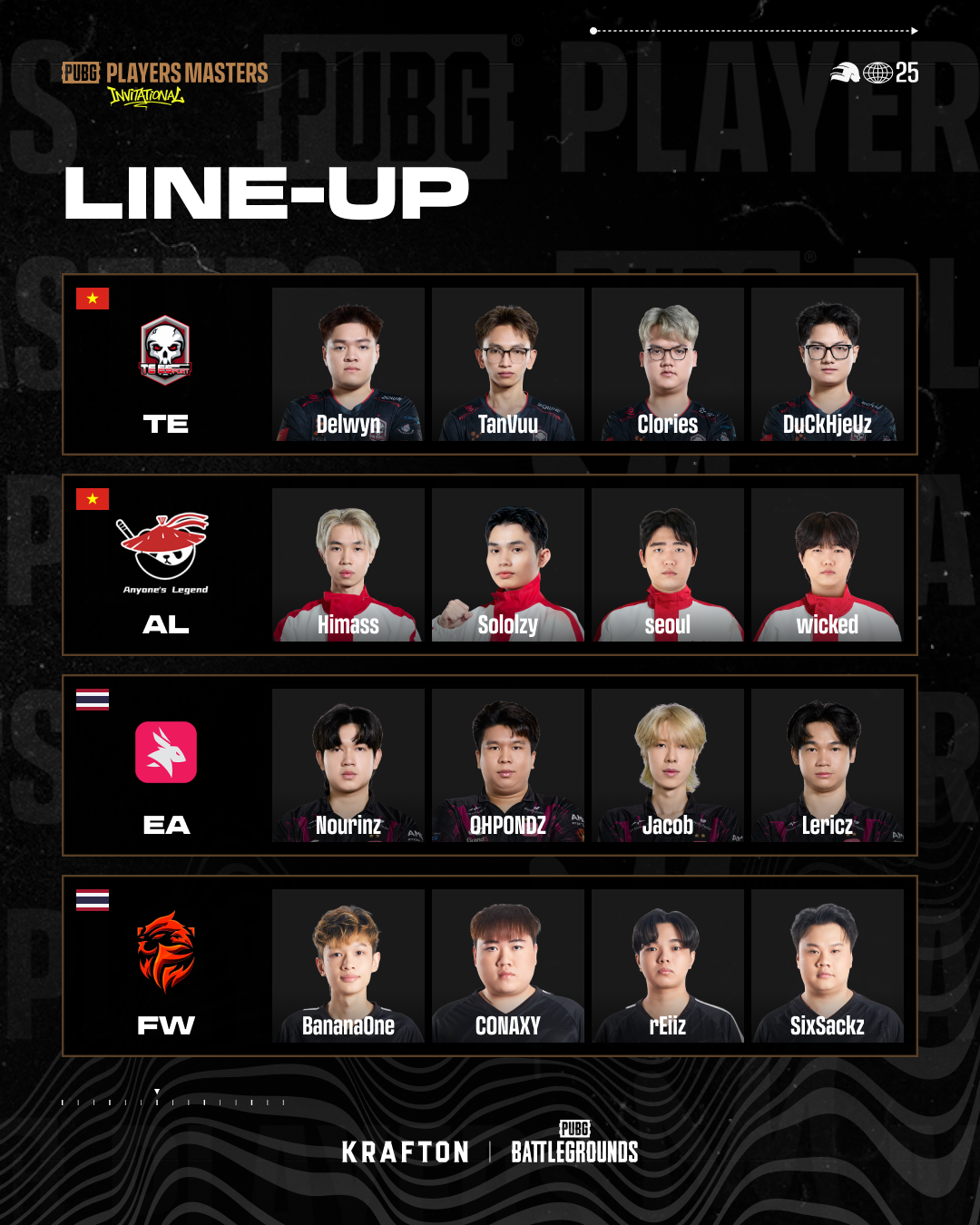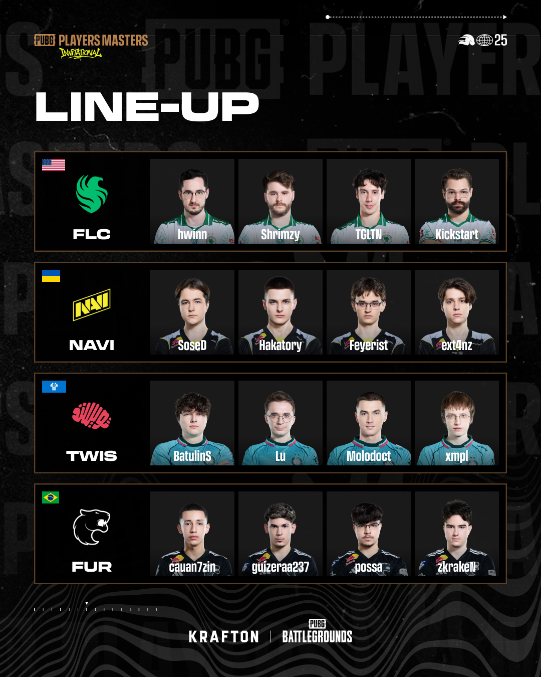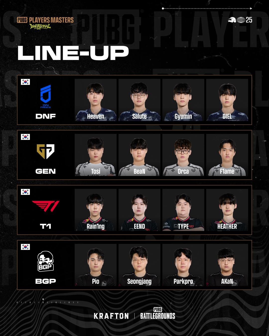 ■ 펍지 플레이어스 마스터즈 인비테이셔널 참가팀 및 로스터 안내