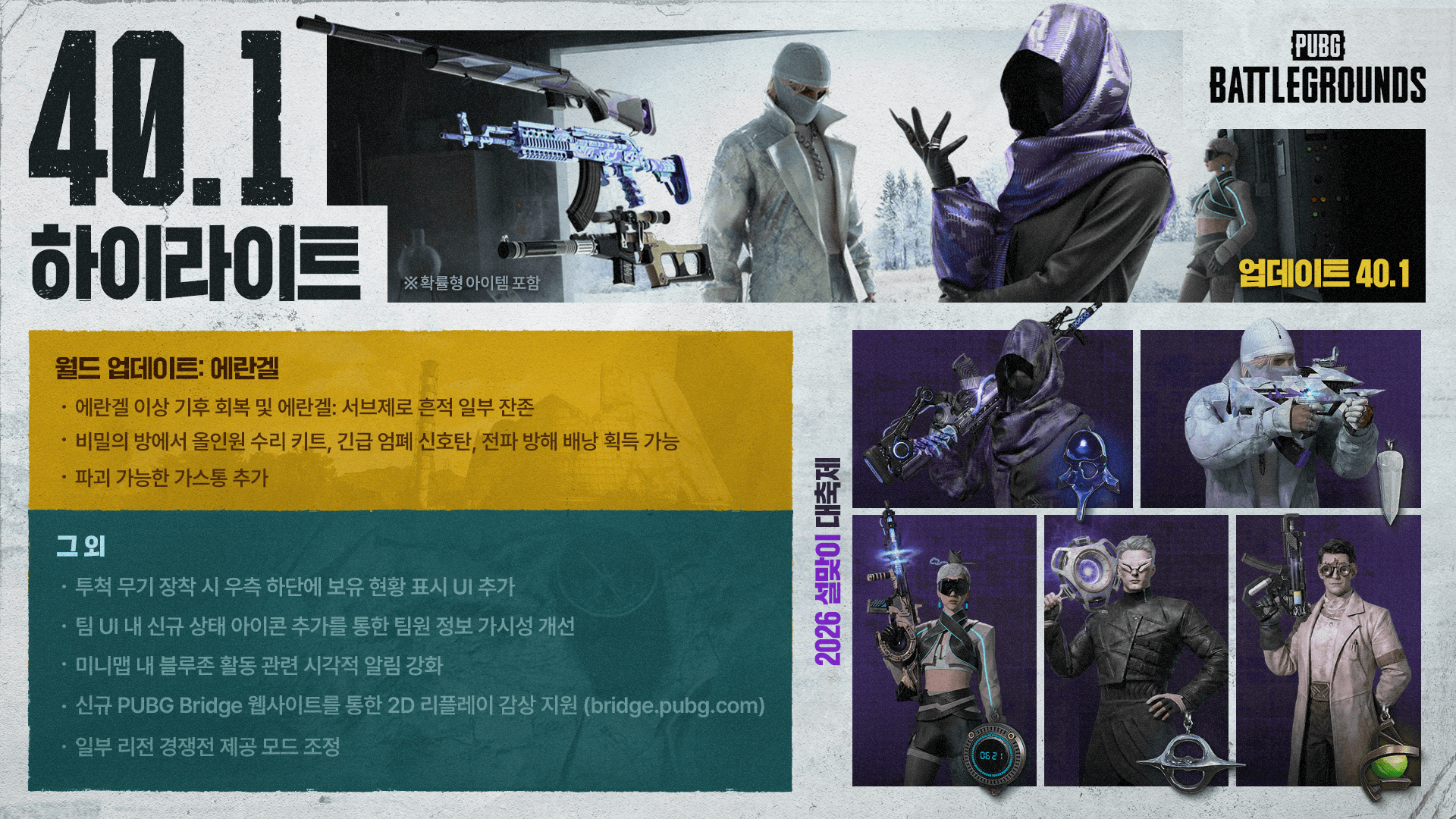 - 에란겔: 서브제로 전용 아이템과 피처가 제거되었습니다.