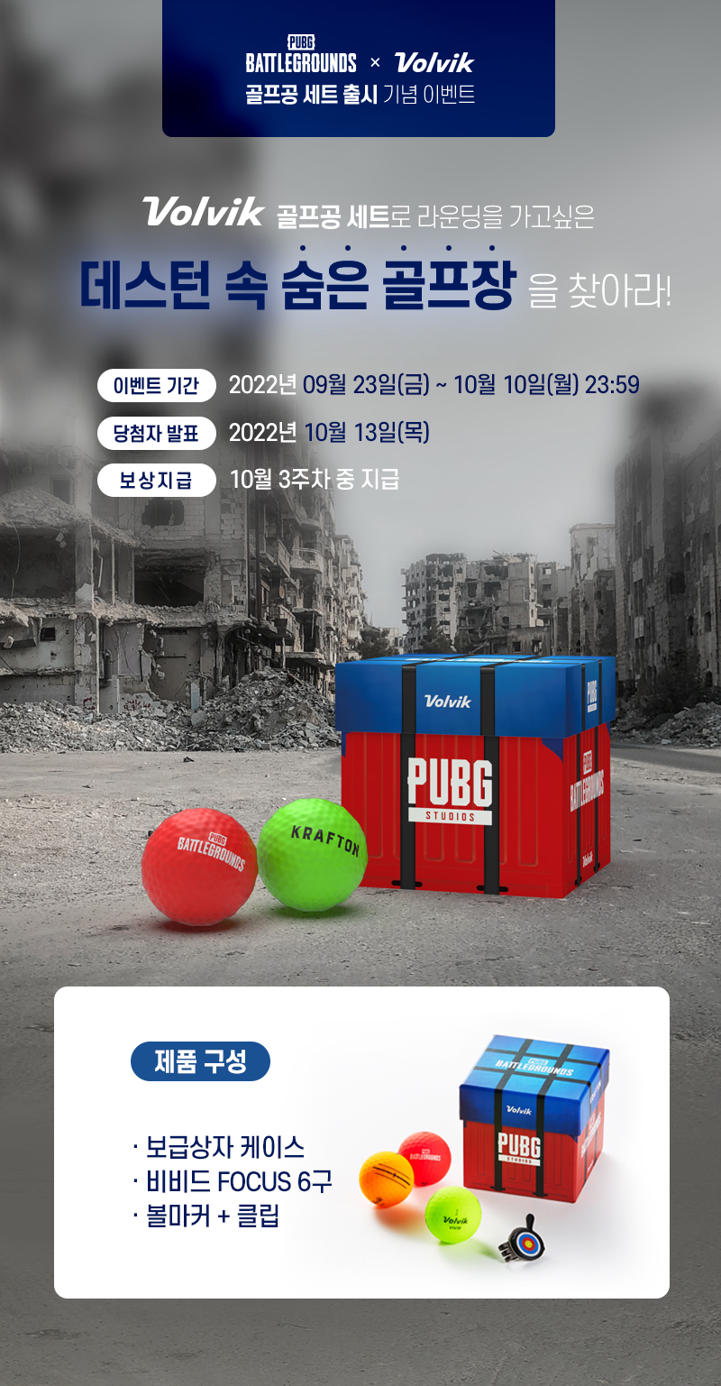 배틀그라운드와 대한민국 대표 골프용품 브랜드 Volvik의 컬래버레이션이 진행됩니다~!