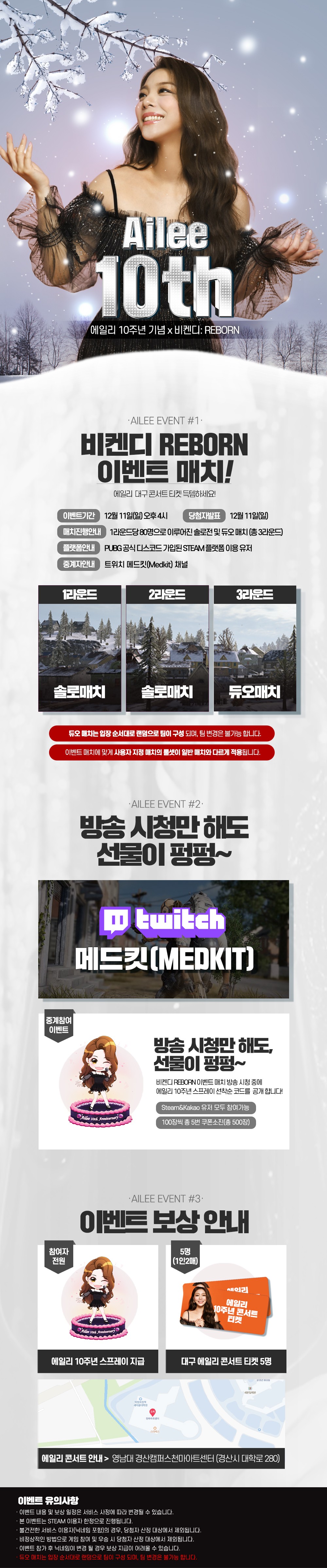 PUBG 파트너로 활약 중인 가수 에일리님의 데뷔 10주년 기념, 새롭게 업데이트 된 비켄디 리본에서 특별한 이벤트 매치가 진행됩니다!