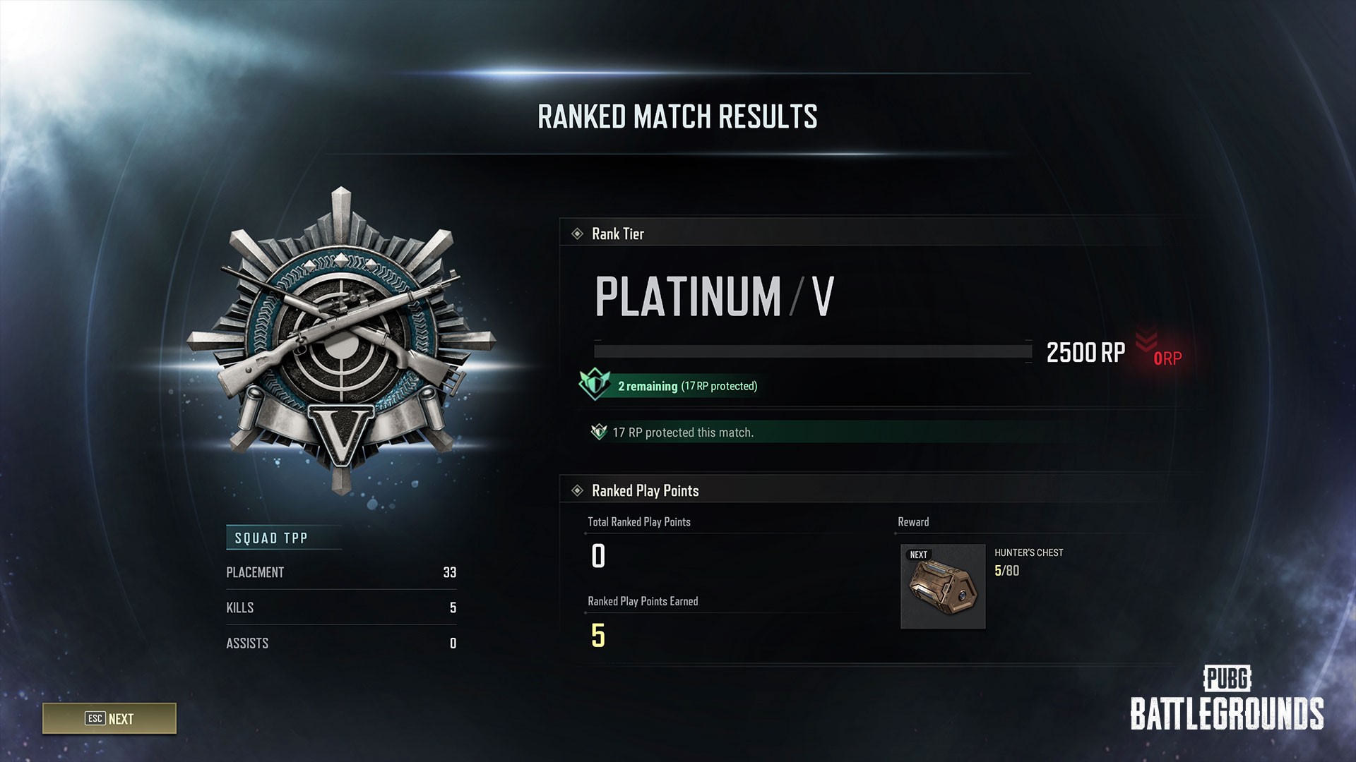 - 매치 종료 후 RP가 현재 티어의 최소 점수 이하로 하락할 시 티어 프로텍션이 발동되어 RP가 현재 티어의 최소 점수로 고정되고, 티어가 강등되지 않습니다.