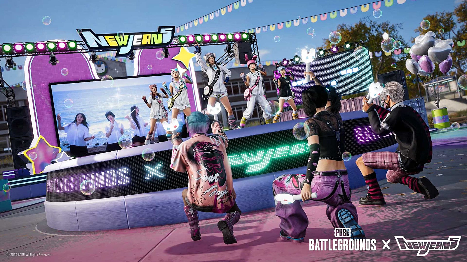 스테이지 위에서 뉴진스 뮤직비디오에 맞춰 신나는 무대를 펼칠 수 있으며, 태이고 곳곳에 위치한 배틀그라운드 x 뉴진스 음반 가게에서