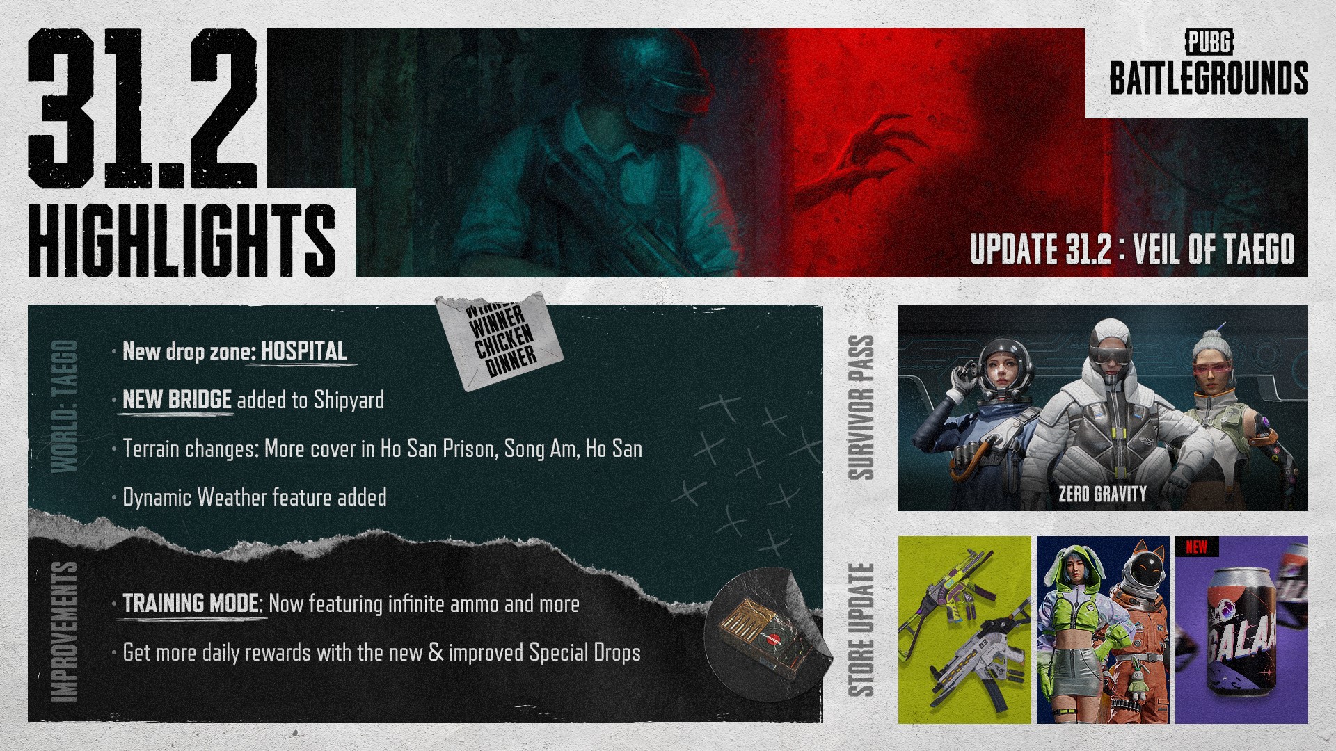 - 콜리전, 텍스처, 안정성 이슈 등 전반적인 에란겔과 태이고 맵 관련 버그가 수정되었습니다.
