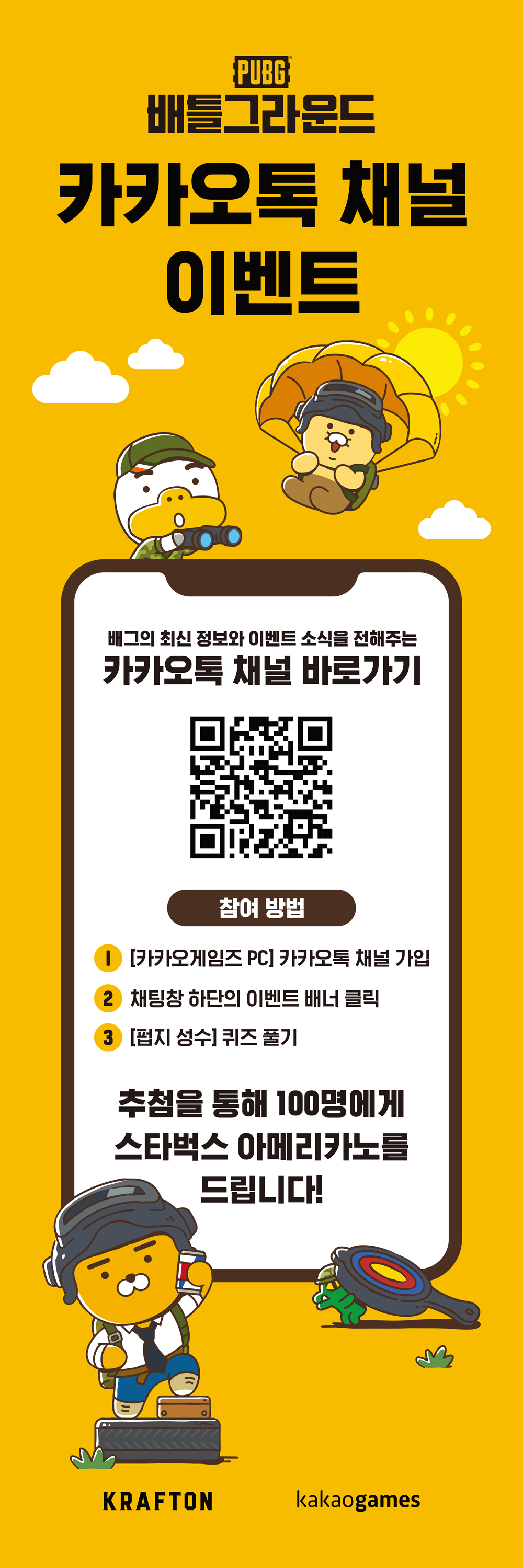 배틀그라운드의 최신 정보와 이벤트 소식을 전해주는 카카오톡 채널!