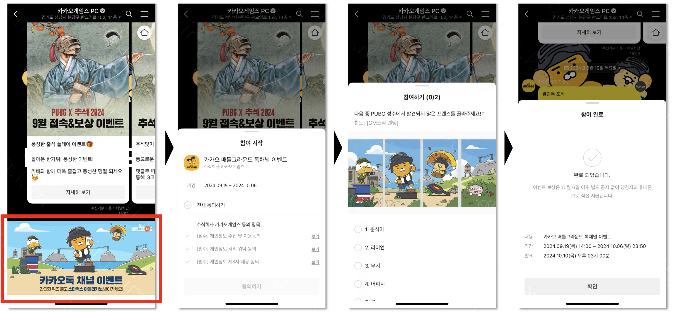 - [카카오게임즈 PC] 카카오톡 채널에 접속 후, 퀴즈의 정답을 맞혀주세요!