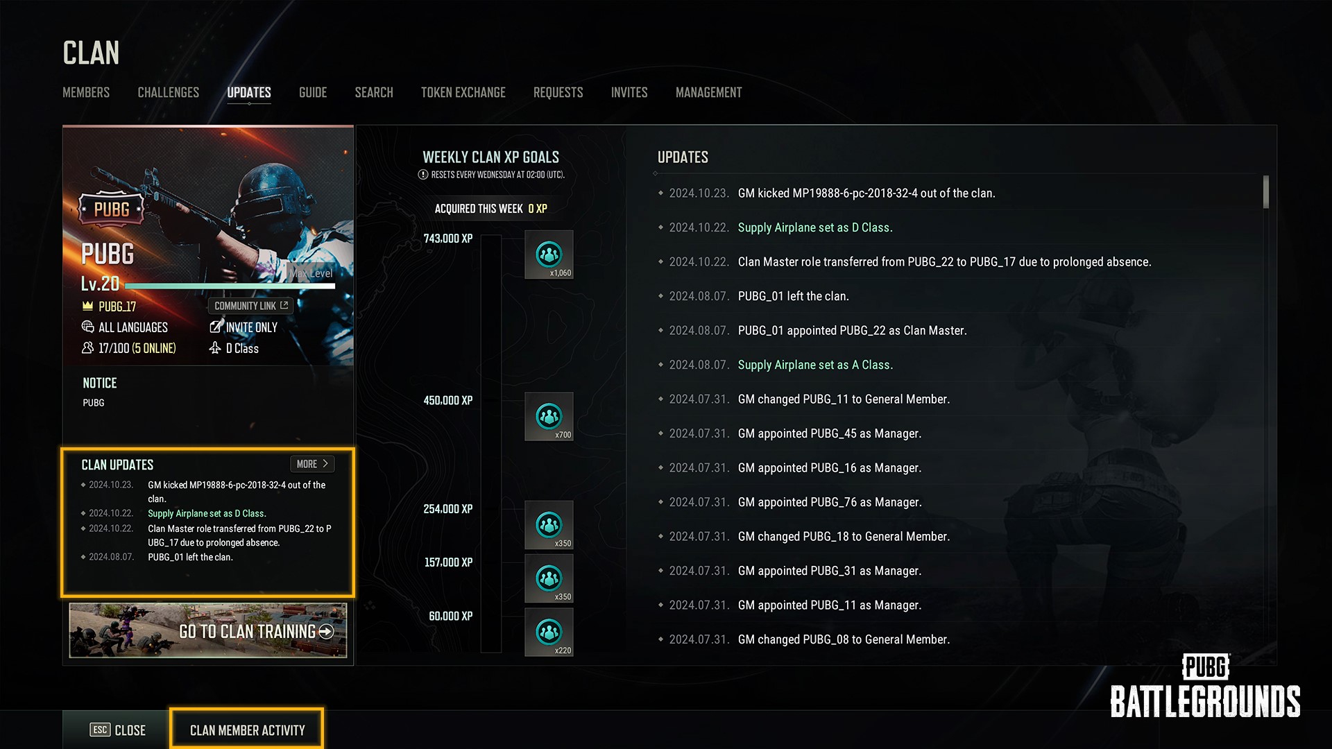 ㄴ 기존과 동일하게 클랜원 활동은 클랜 관리자 및 마스터에게만 노출됩니다.