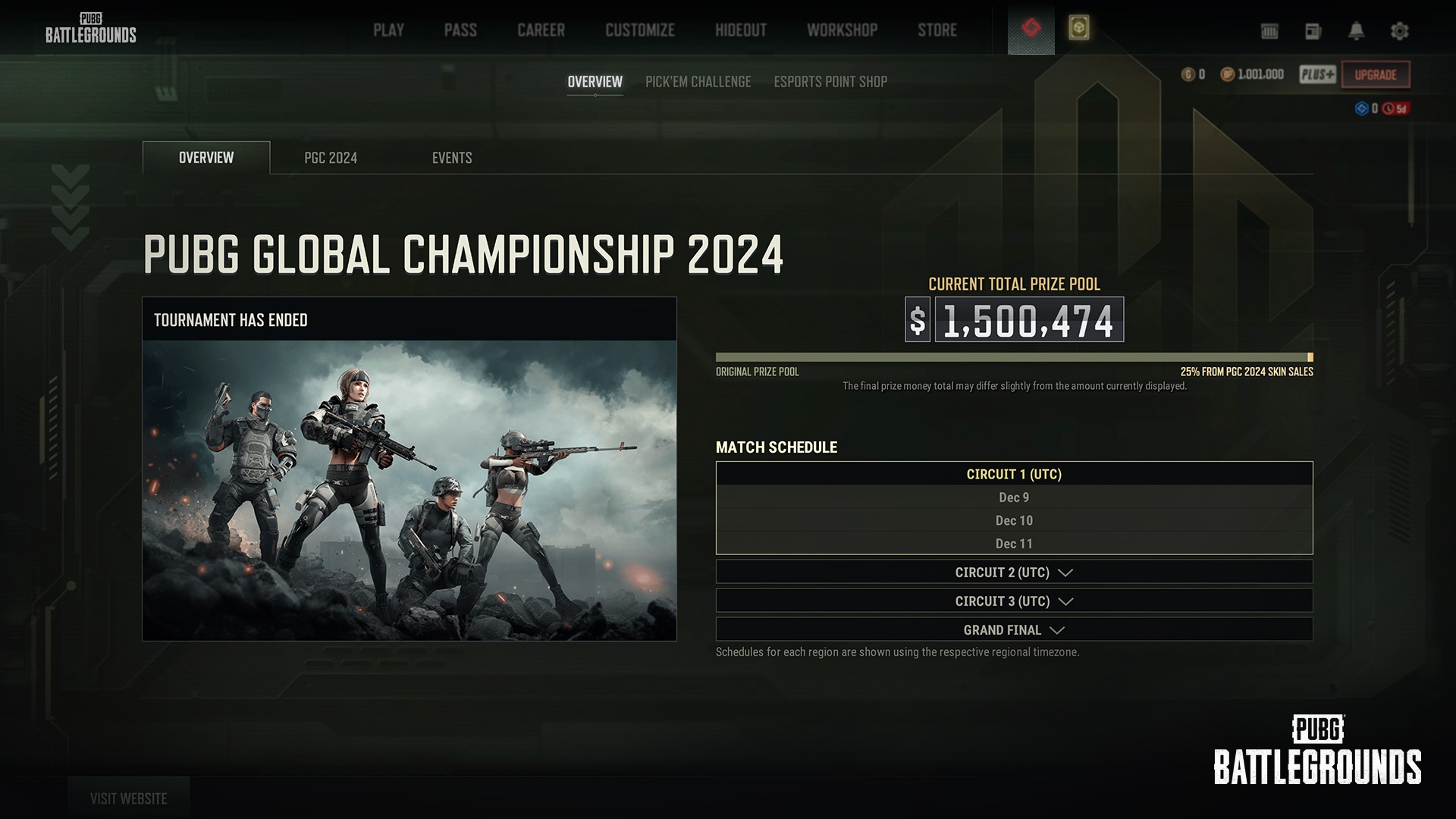 - 개요 페이지에서 PGC 2024 일정과 상금을 확인할 수 있습니다.