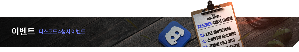 '디스코드'로 4행시를 남겨주신 분께는 추첨을 통해 "골드 G-COIN 상자 (30일 기간제)" 를 드립니다!