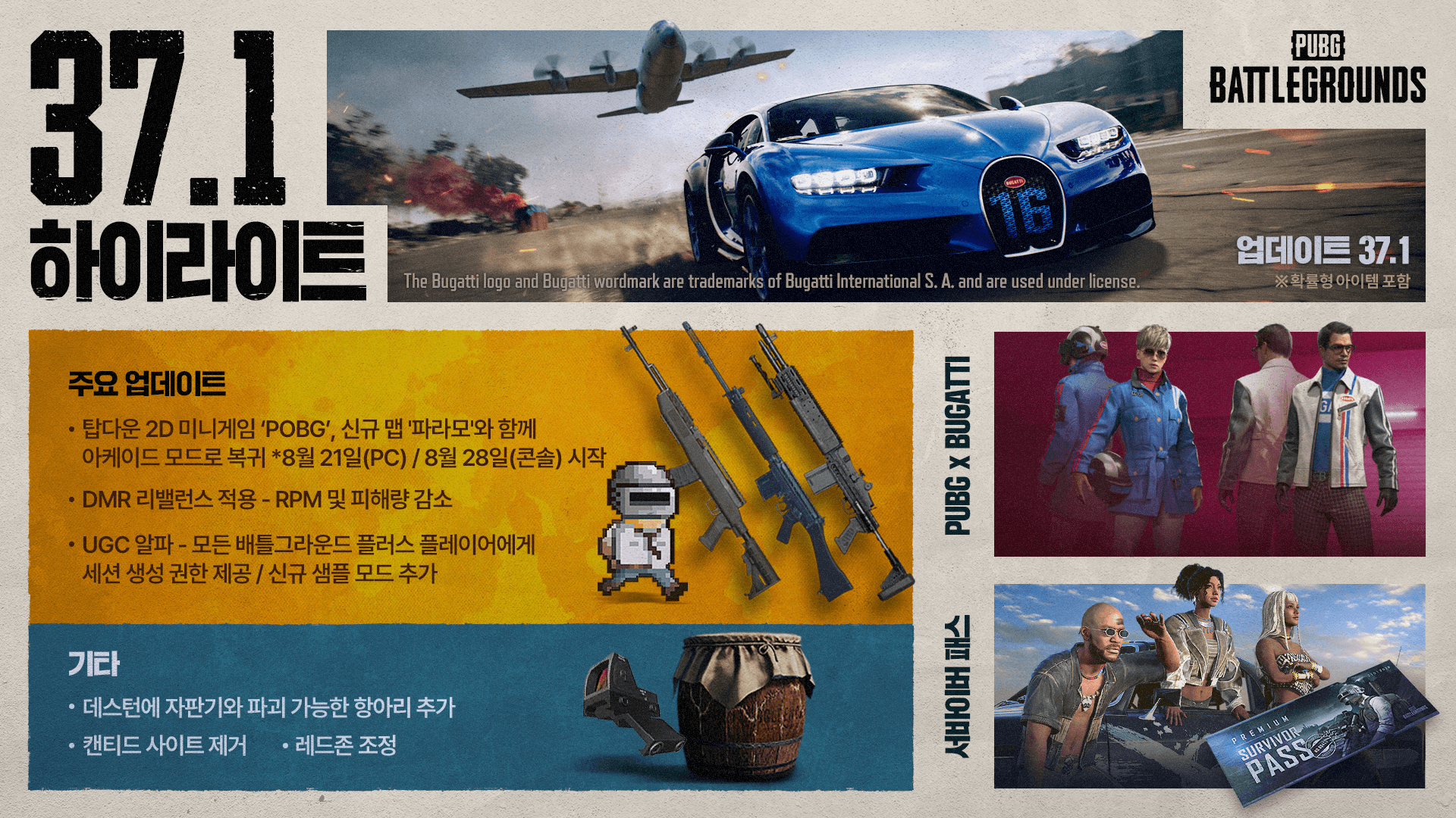 이와 관련된 상세 안내는 곧 발행될 배틀그라운드 x 부가티 콜라보레이션 공지사항에서 확인하실 수 있습니다.