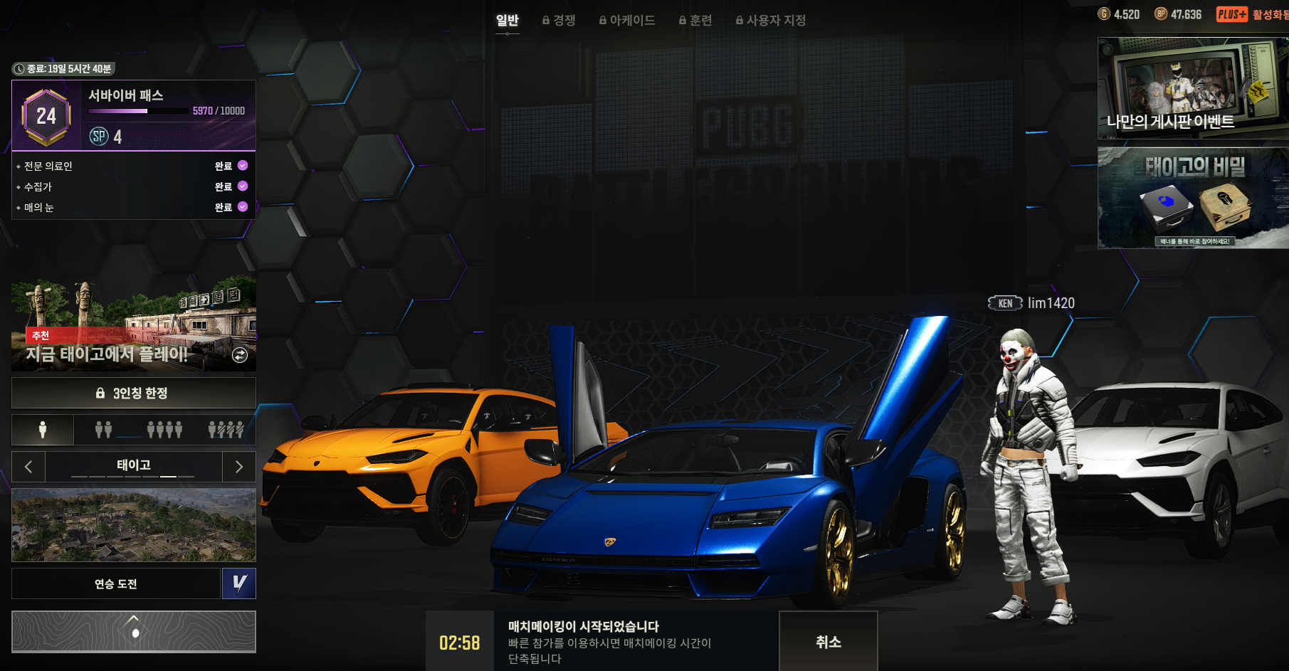 접속 IP나 PC방 정보가 다를 경우 또는 게임 접속 30일이 경과된 경우