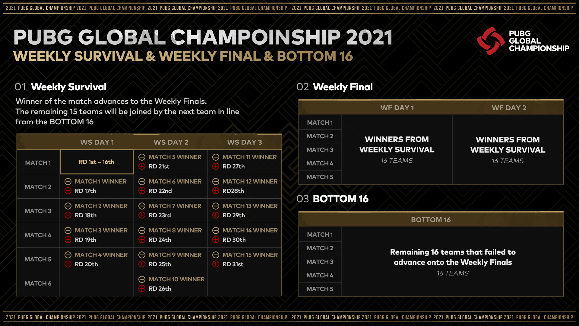 PGC 2021 우승을 향한 본격적인 여정이 시작되는 위클리 서바이벌입니다.