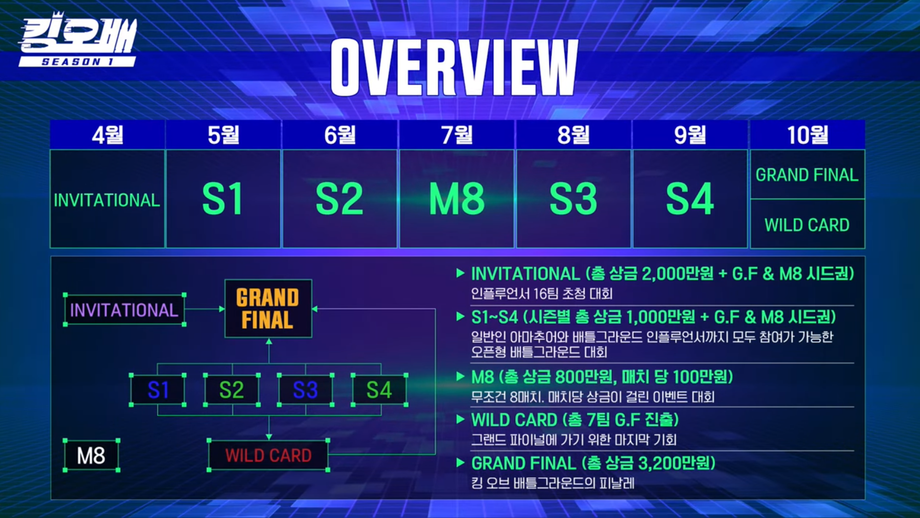 - SEASON 1~4: 시즌 당 1,000만원의 상금! 일반인 아마추어와 인플루언서 모두 참여가 가능한 대회