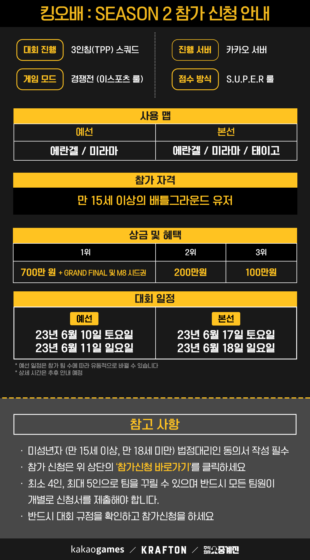 - 참가 자격: 만 15세 이상의 배틀그라운드 유저