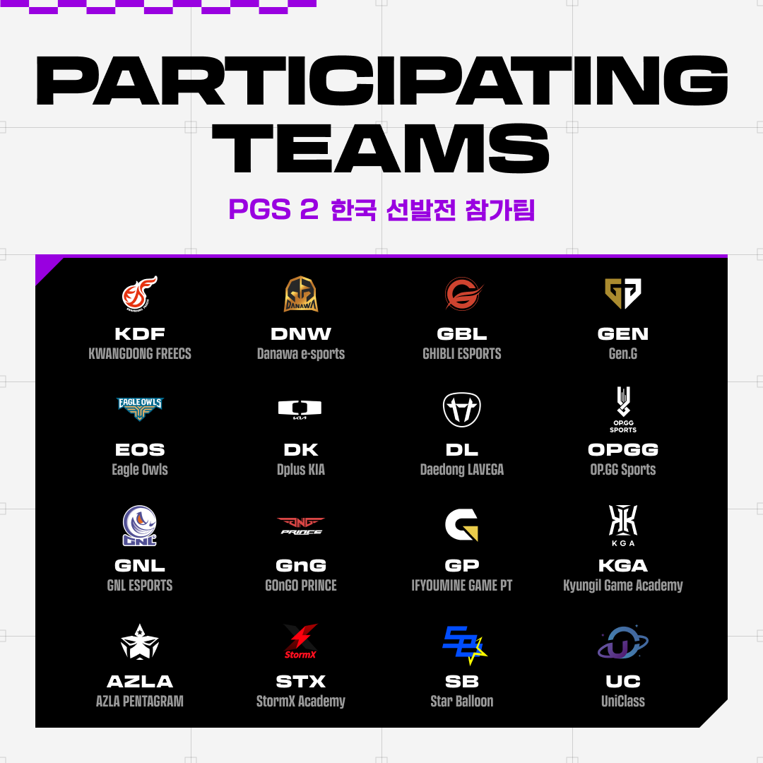 (*GLOBAL PARTNER TEAM인 Gen.G의 경우 PGS 2 자동 진출)