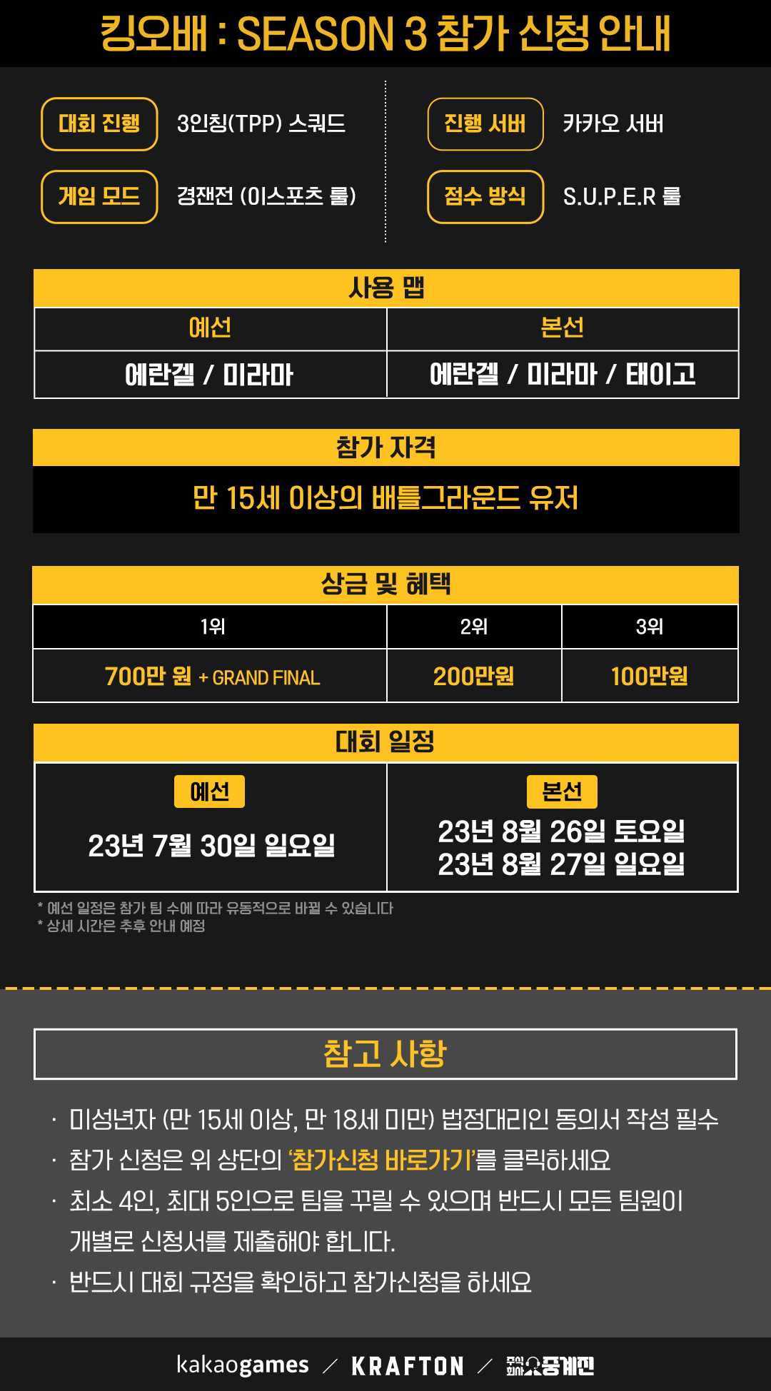 - 참가 자격: 만 15세 이상의 배틀그라운드 유저