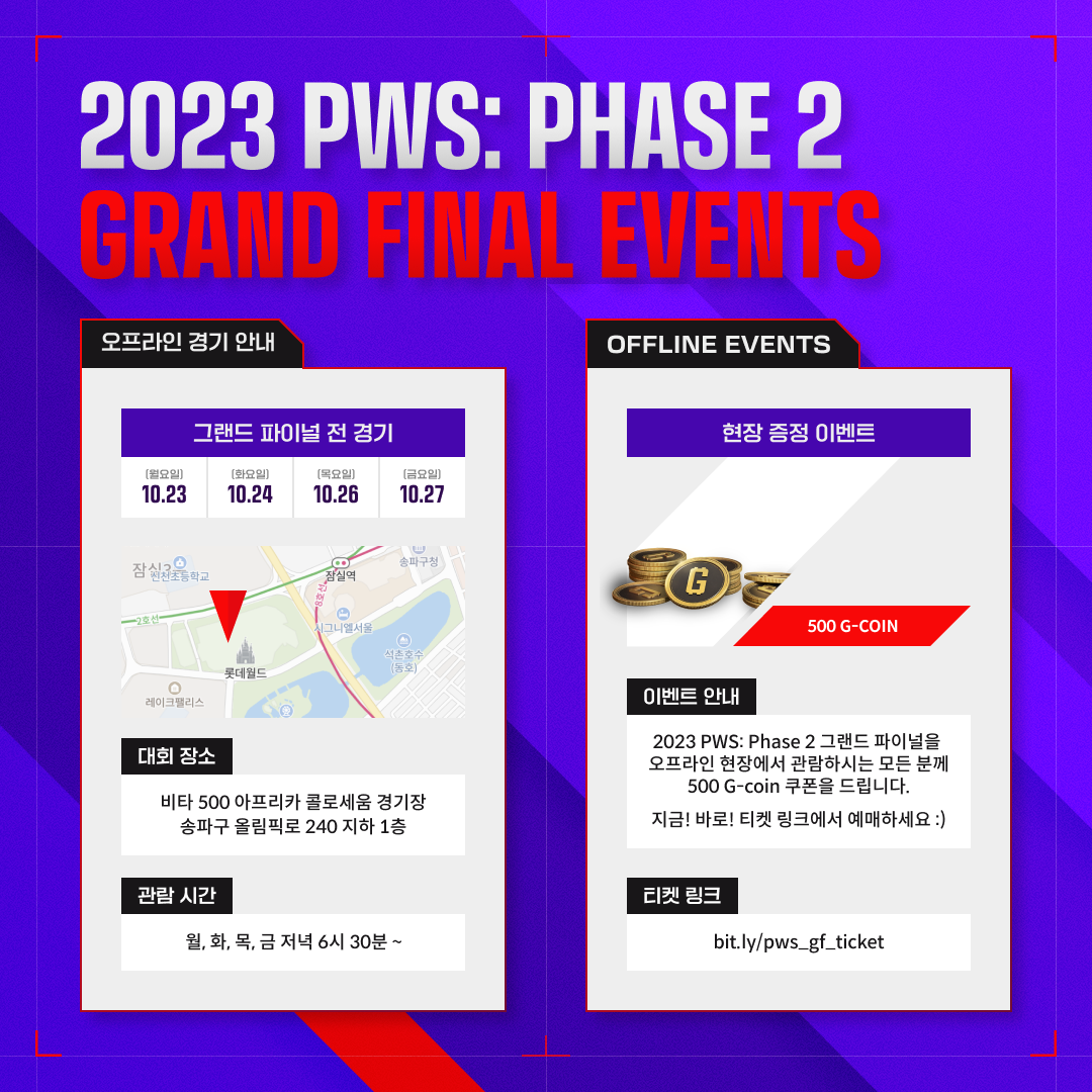 : 2023 PWS: Phase 2의 그랜드 파이널은 오프라인, 유관중으로 진행됩니다 !