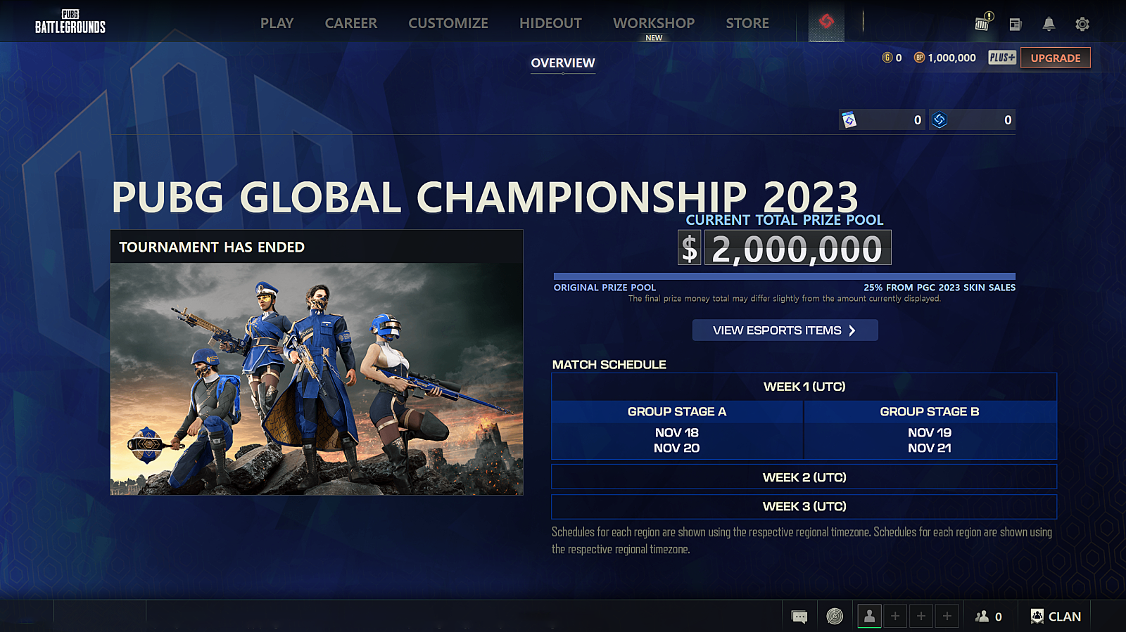 이스포츠 탭에서는 PGC 2023에 대한 전반적인 정보들을 살펴볼 수 있습니다.