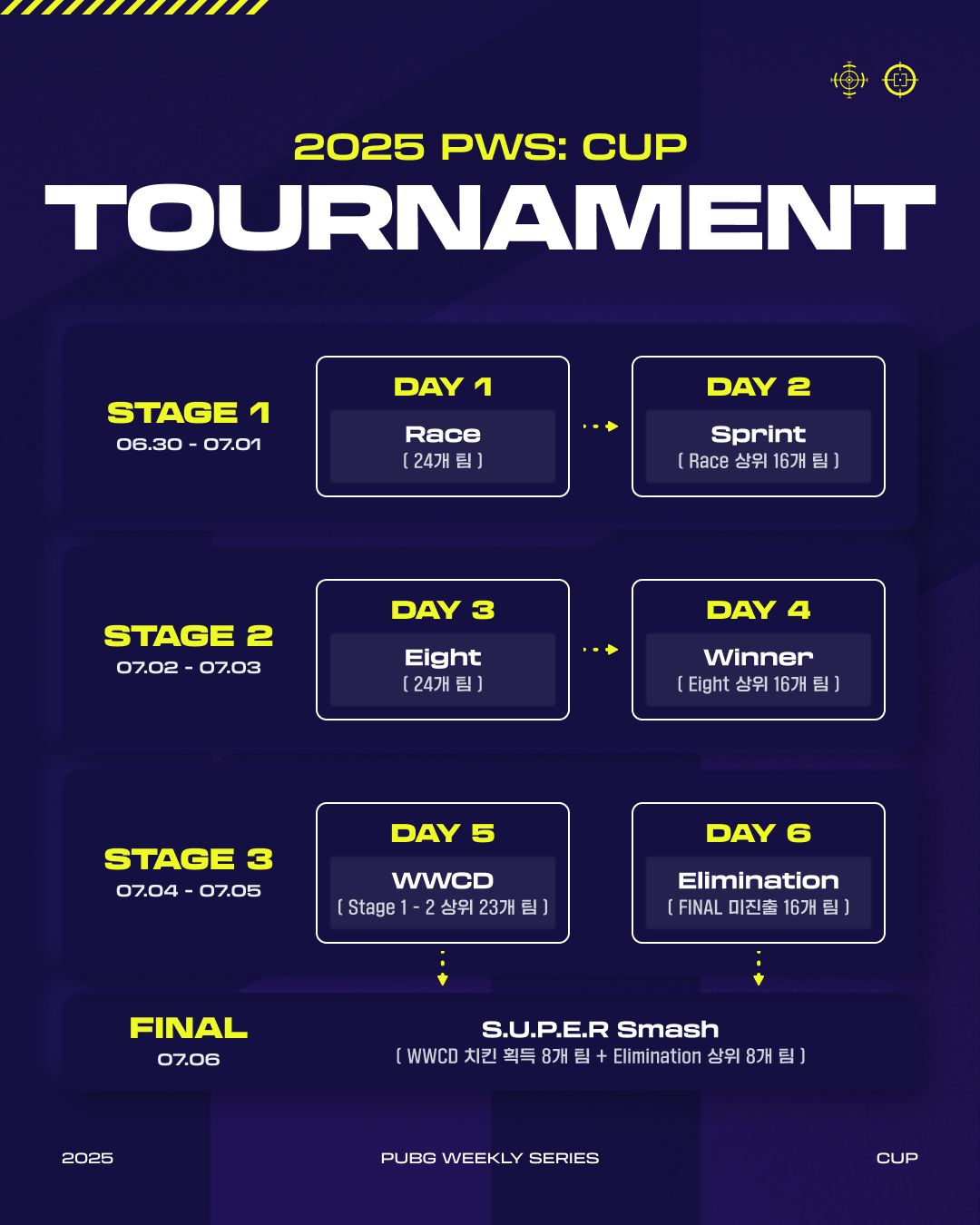 24개 팀이 함께하는 2025 PWS: CUP은 총 상금 2천만 원과 더불어 KR PGC Points를 획득할 수 있으며,