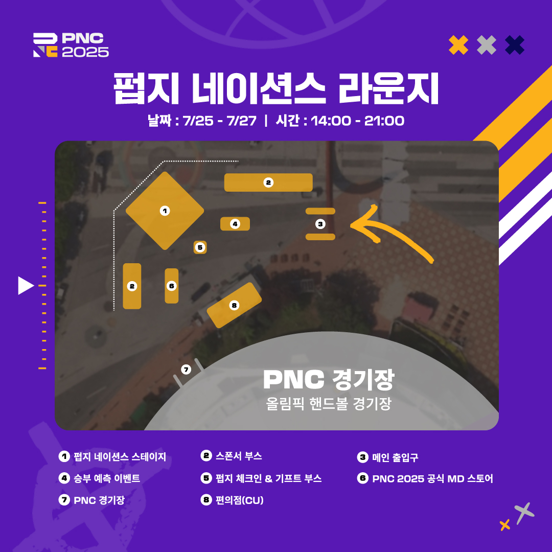 팬존 외 경기장에서 진행되는 다양한 추첨 이벤트 및 특별 공연들도 준비되어 있으니, 펍지 네이션스 컵 2025 현장에서 잊지 못한 추억을 만들어 보세요!