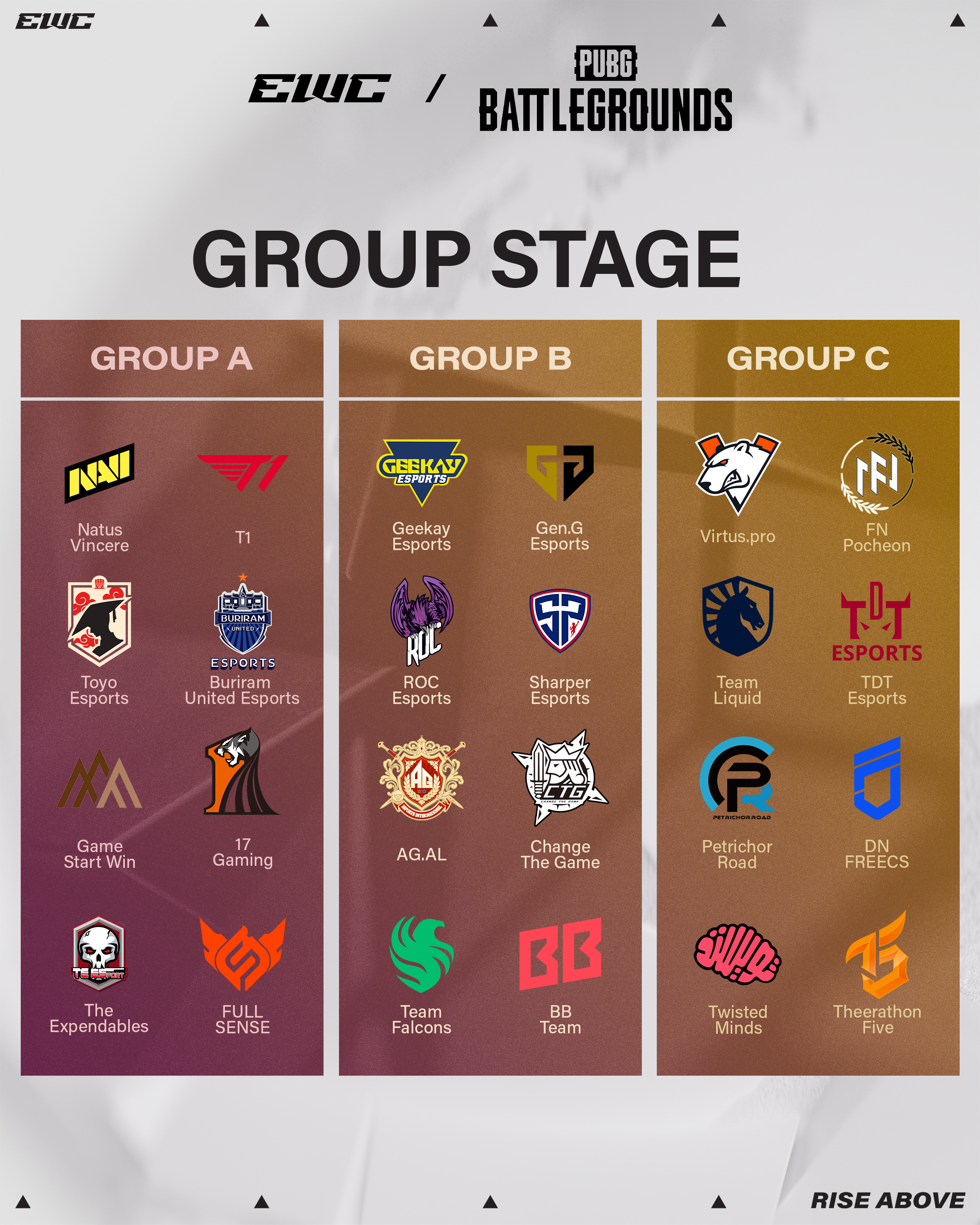 모든 경기가 종료된 이후, 가장 많은 포인트를 획득한 단 한 팀만이 이스포츠 월드컵 배틀그라운드 부분 챔피언으로 등극하게 됩니다.