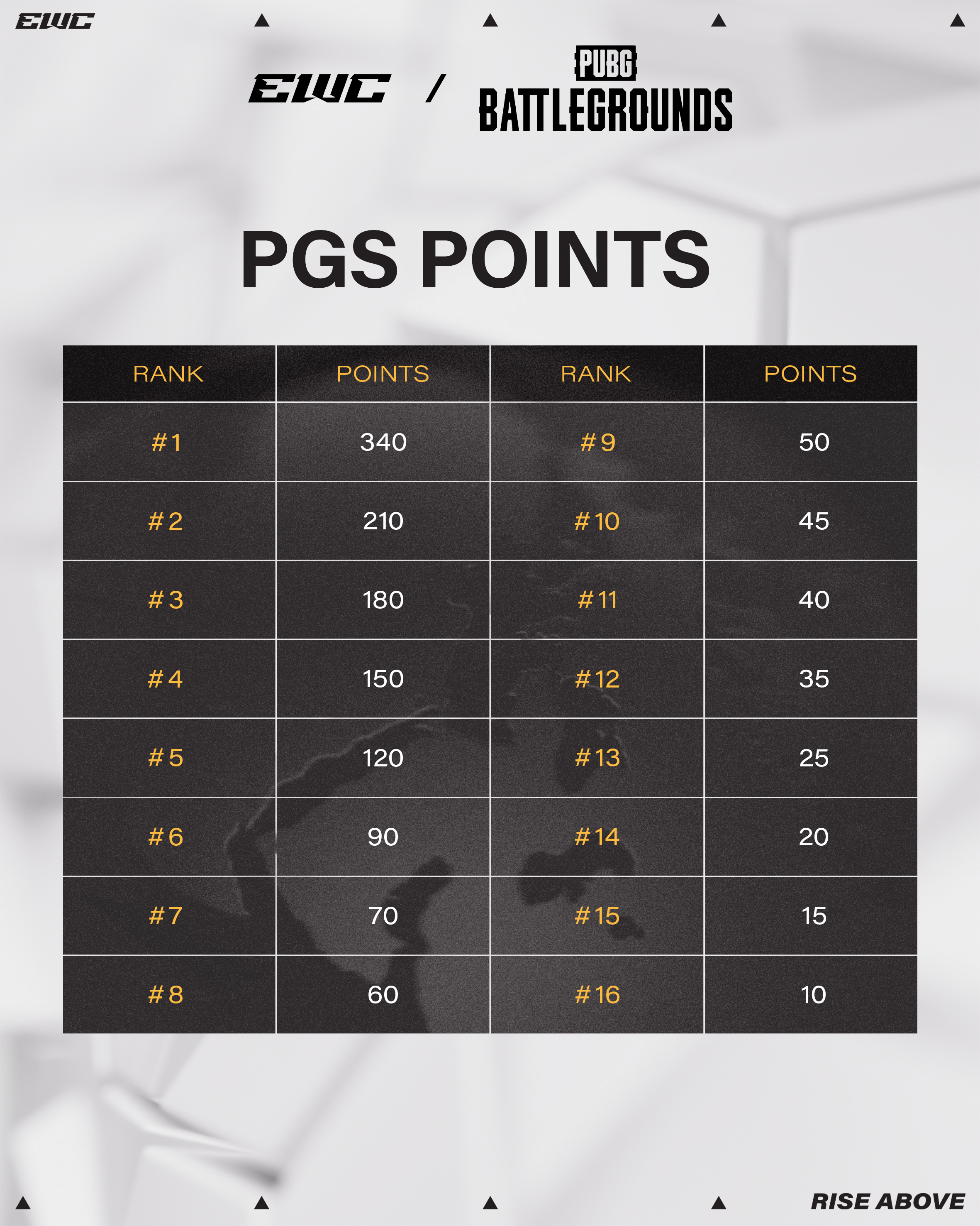 PGS 포인트 시스템에 대한 더 자세한 정보는 이전에 안내해 드린 배틀그라운드 이스포츠 2025 토너먼트 포인트 안내 공지를 참고해 주세요.