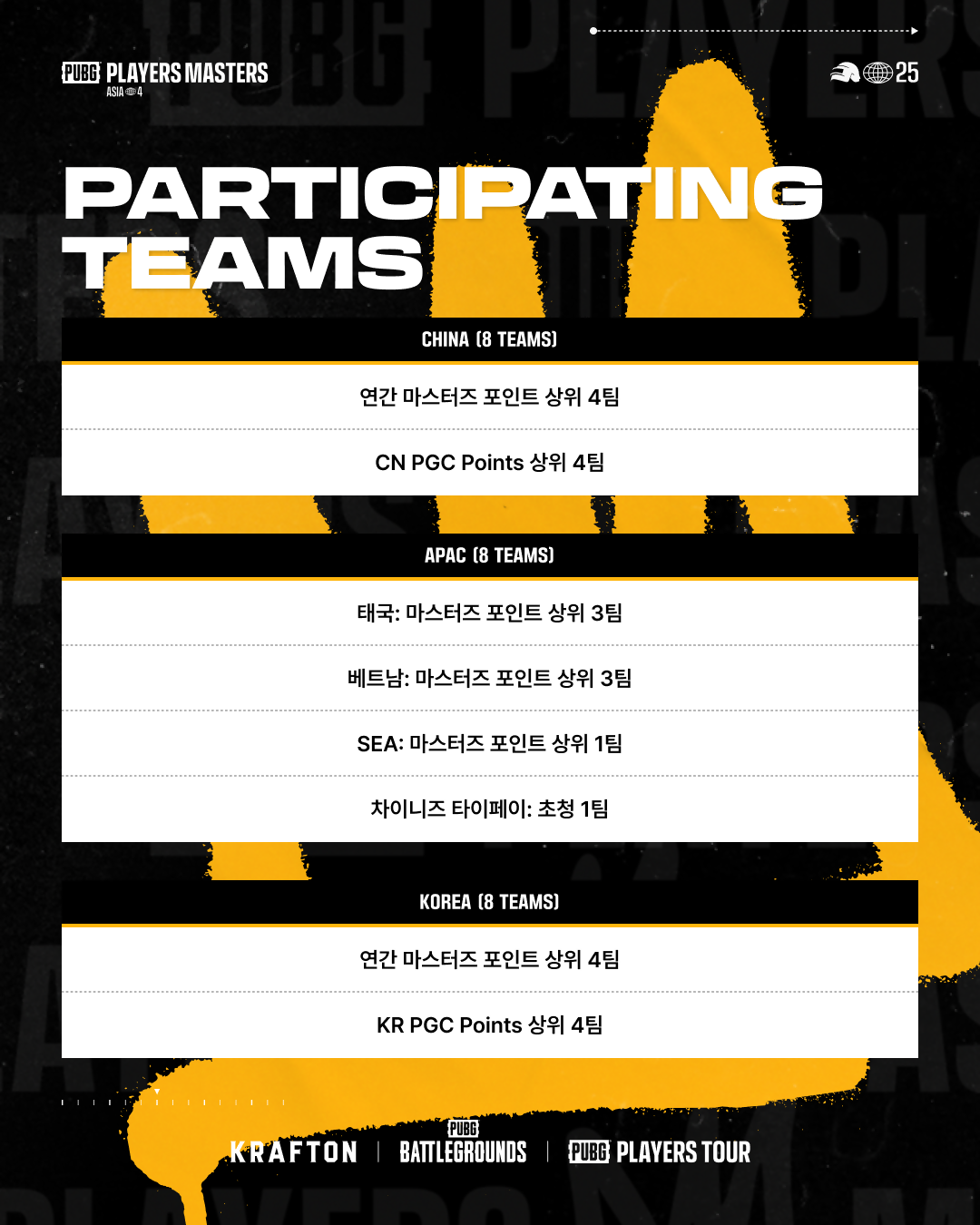 2025 펍지 플레이어스 투어의 대망의 아시아 최고의 팀을 가리는 마스터즈 4!