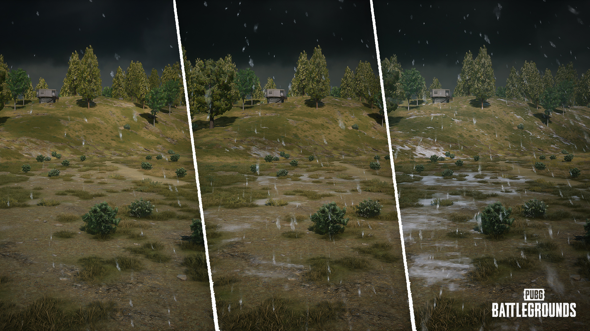 위성체가 추락한 지역들이 얼어붙고 에란겔의 기후에도 급격한 변화가 찾아옵니다.